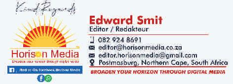WEEKLY NOORD KAAP Online Readers hadedanews@gmail.com finansiële dienstefinansiële dienste ConcretePavingBricks AggregateProducts www.poortbeton.co.za 69 Schroder St, Upington 082 066 3156 www.vecwholesalers.co.za Electrical Wholsalers Precision & Innovation Kalahari Styling......Bhyren Sieberts (black beret) owner of ‘House of B’Fashion and Modeling School with his Crew Photo: Newton Photography 44 pages 435 000 Weekly