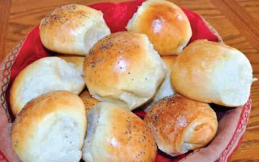 by. Meng die eiers en botter (ek het die botter gemikrogolf)effe by die mengsel in en meng goed. Sif nou die res van die meel in en meng tot 'n gladde Maakmengselseker jy skraap die kante en bodem goed skoon - maak dit nou toe met 'n doek. Laat die deeg rys vir ongeveer 30 minute tot dit dubbel die hoeveelheid in die bak is. Voorverhit jou oond tot 190°C (375°F). Meng nou weer die deeg dat hy platval houtlepel)(meten voeg nou net bietjies bietjies meel by om die deeg te kan knie. Knie net 'n paar keer Deel jou deeg nou in 12 stukke en vorm bolletjies deur jou