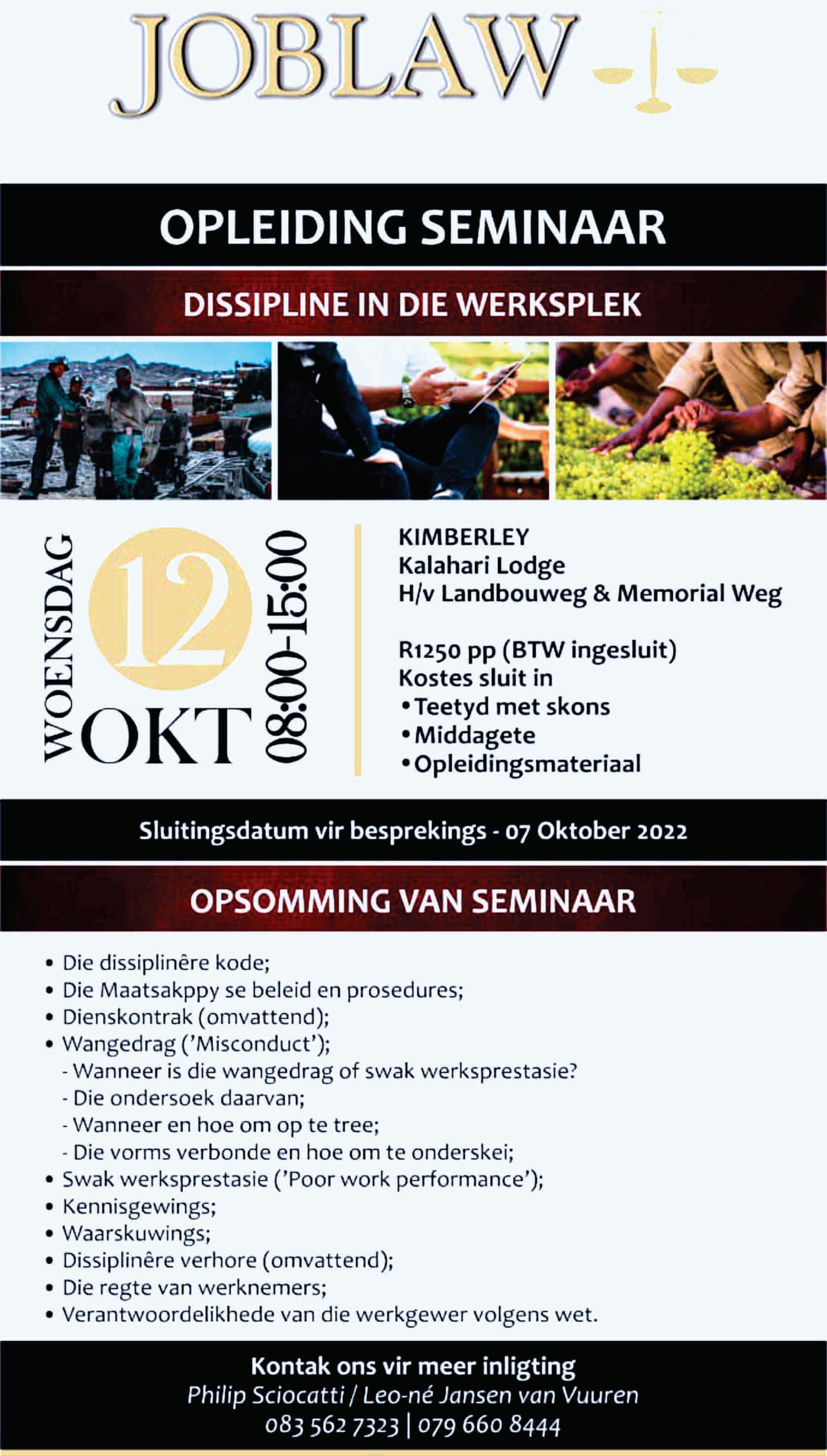 Vrydag 23 September 2022 054 495 0053 email sales@kwscrapyard.co.za Deon 084 583 2749 060 782 1223 062 208 6875KWS Kalahari Wiele Scrapyard KWS Based Upingtonin Courier Countrywide BIGGEST Scrapyard in the N.Cape 5000 + Vehicles New & Used Parts New & Used Parts Market Leaders for 16 years Think New and Used SPARE PARTS.... Think ......... Kalahari Wiele Scrapyard SPECIAL BeesStowe BeesTjops Gerookte WeskusBeskikbaarSnoek GemengdeLamstjops 30LargeEiers R89.90/kgR50.00 R79.90/kgR154.90/kg Braaivleis Daagliks Dinsdag tot Saterdag GratisbinneafleweringUpington Terme&Voorwaardesgeld 30Sluitingsdatum:September2022 Schroderstraat33,Upington (054) 332 3071 Koop enige Pro B 5 of MN 7 produk en staan 'n kans om 'n Upington besonderhedewengeskenkbewysApteekteterwaardevanR500!!!Inskrywingisukasregisterstrokiemetunaamenkontakagterop.Daarsal'nboksbeskikbaarweesviruomdiestrokieinteplaas.