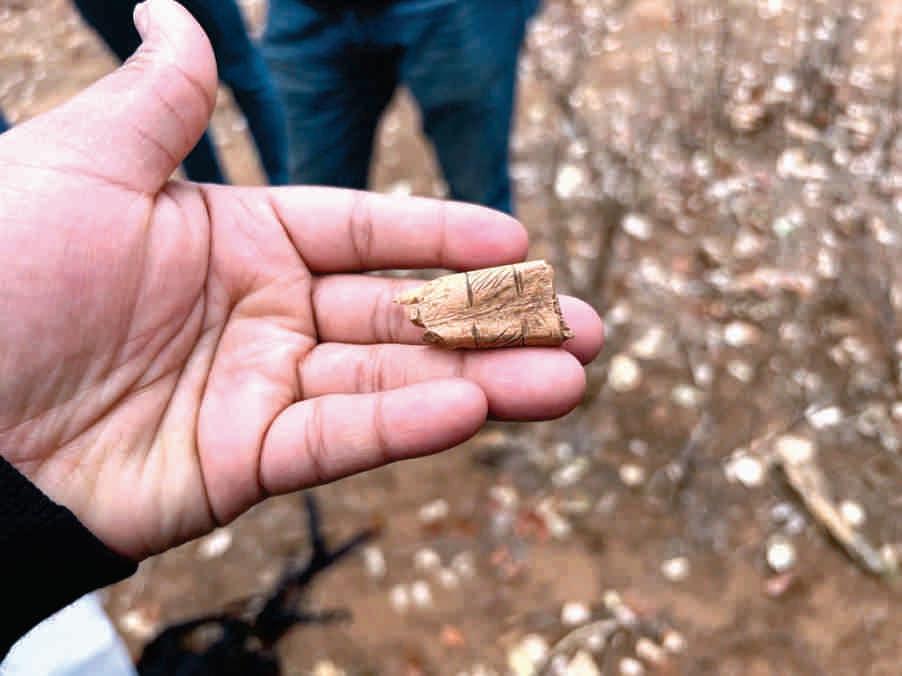 The pieces discovered in the area include clay pots, metal, hunting bows and arrows, remains of burnt clay houses, animal bones, marine shells, and glass beads dated through carbon radio dating.