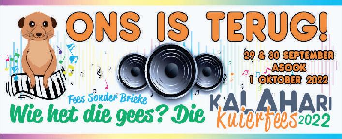 Come and enjoy the evening with us at the Kalahari Kuierfees at Desert Palace Resort. Let's rock the night away”