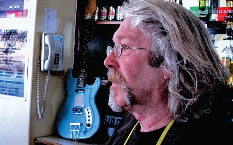 Hotel owner Rod McGregor Mann arrived: shoulder-length grey hair, piercing eyes and lots of confidence; about the blue Gallo electric guitar behind the counter, he says: “I found it in Edenburg on a farm, in its case but covered with crap.This is