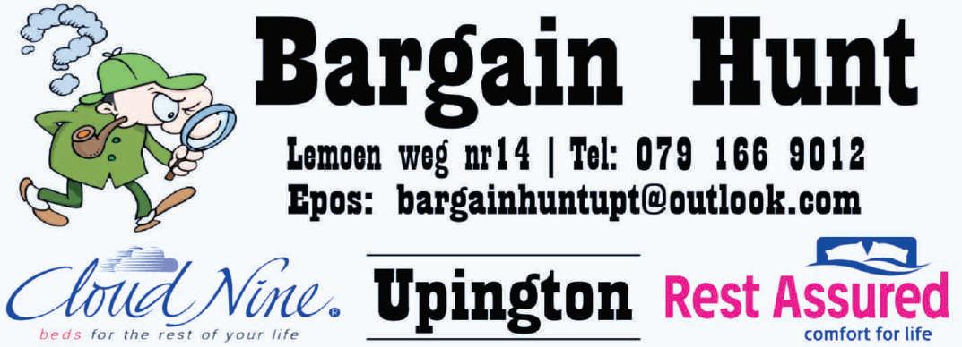 54 Le Roux Street / 54 Nelson Mandela Drive Upington 054 331 1294 www.uptcycle-outdoor.co.za Speak To the EXPERTS BIKES * ACCESSORIES * REPAIRS * ADVICE Vrydag 7 April 2023