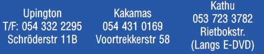 9am-8pm Sat.9am-3pm SundaysClosed ORDERS 066 4282 484 Festive Season Times UPINGTON UPINGTON Vrydag 7 April 2023