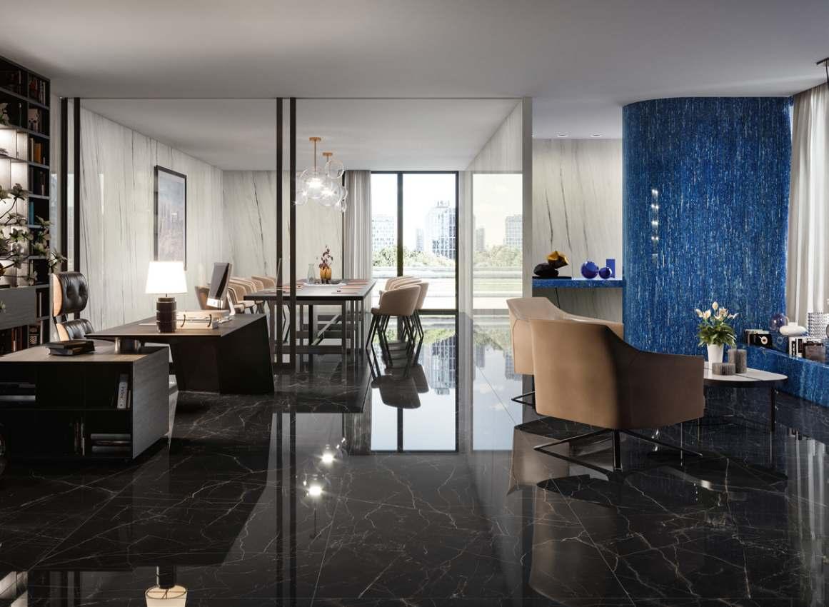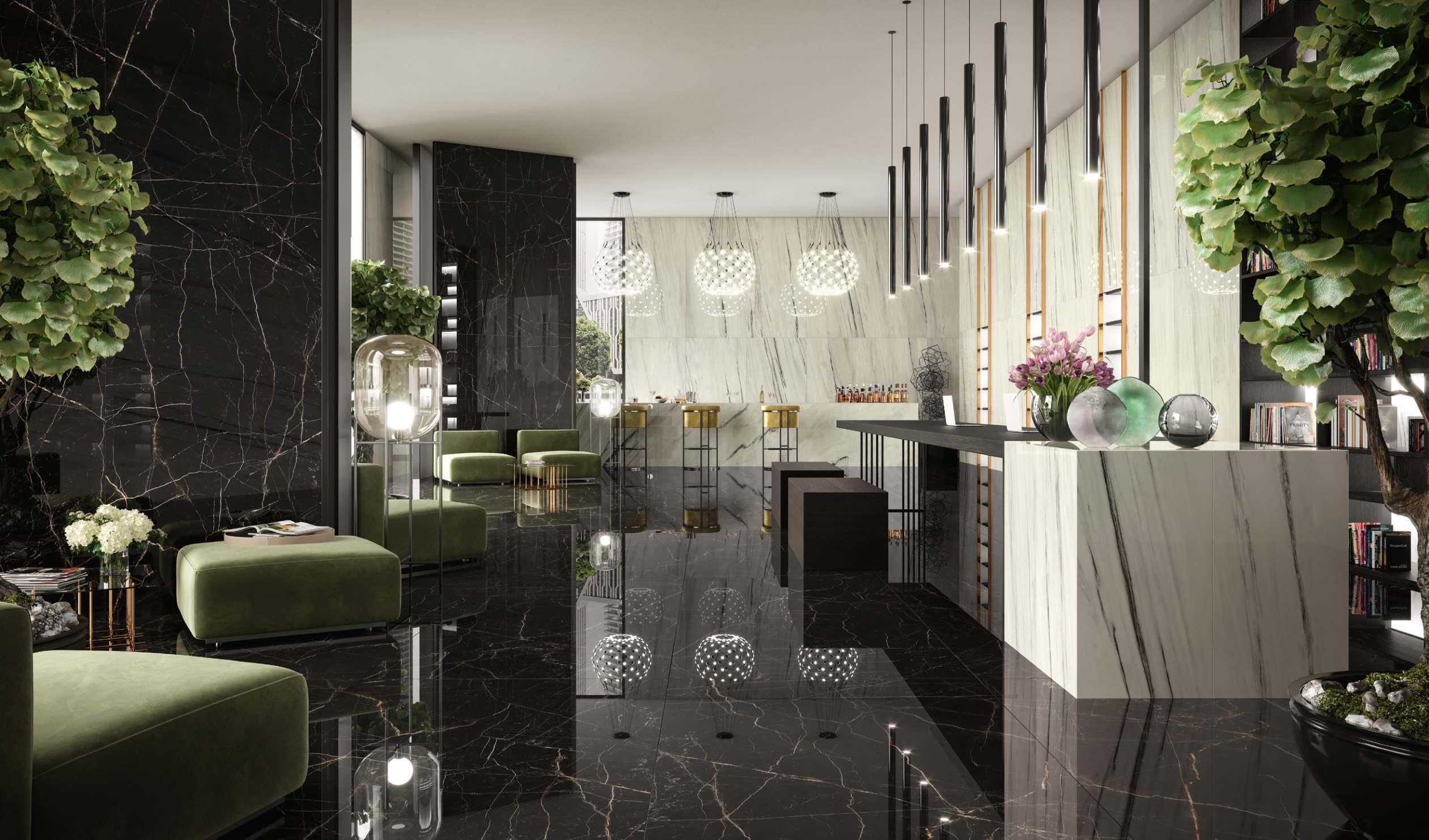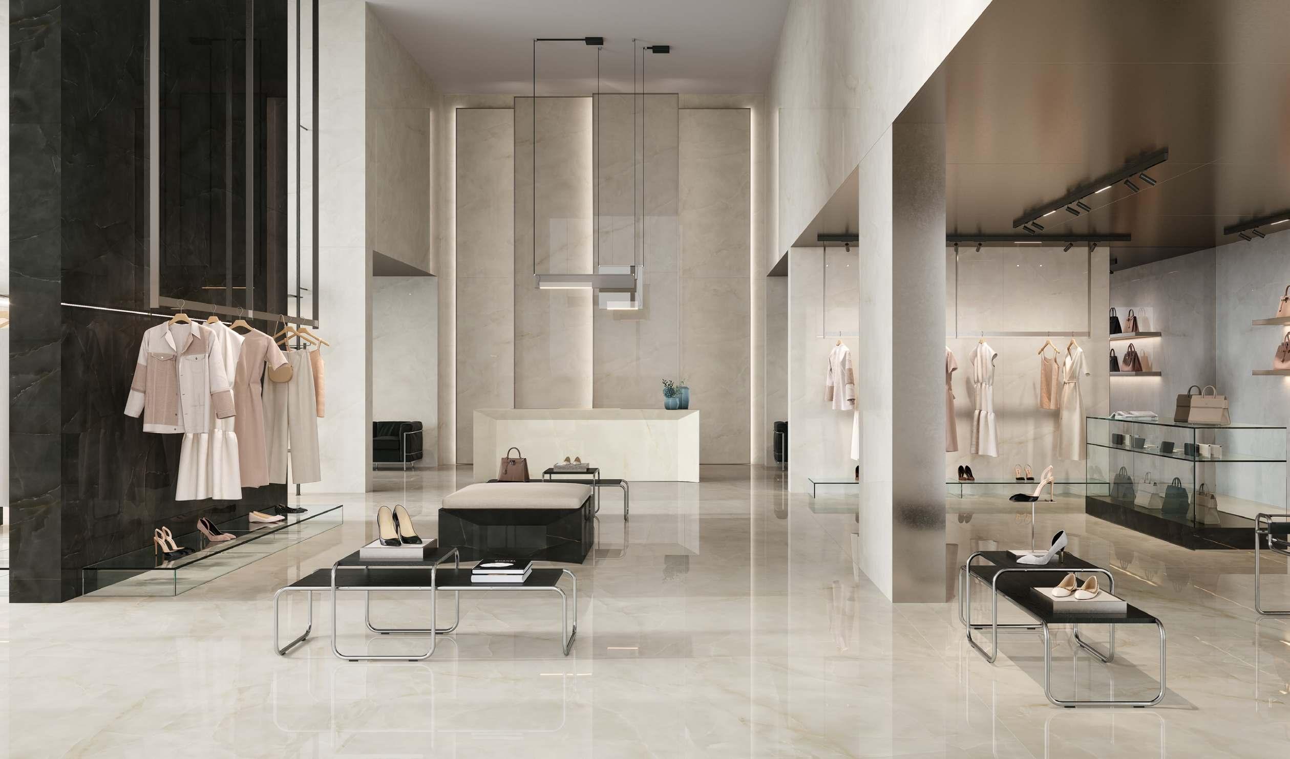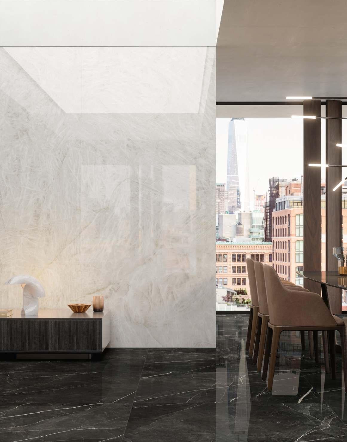 Polished, Velvet, and silk finishes are recommended for low-stress residential or commercial floors where anti-slip performance is not required. The surface’s shine and superior ease of cleaning are the result of in-depth studies and extensive technical research aimed at ensuring its durability over time. If the product is in direct contact with the outside, use moisture and dirt absorption devices to prevent scratches. / Le finiture lappata, Velvet e silk sono indicate per pavimenti residenziali o commerciali poco sollecitati, laddove non siano richieste prestazioni antiscivolo. La lucentezza e l’elevata facilità di pulizia della superficie sono frutto di studi approfonditi e accurate ricerche tecniche volte a garantirne la persistenza nel tempo. Se il prodotto è a diretto contatto con l’esterno, prevedere dei dispositivi di assorbimento dell’umidità e dello sporco per prevenire la formazione di graffi. / Les finitions Velvet et Silk conviennent aux sols résidentiels ou commerciaux à faibles contraintes, où la performance antidérapante n’est pas requise. La brillance et la grande facilité de nettoyage de la surface sont le résultat d’études approfondies et de recherches techniques précises visant à assurer sa persistance dans le temps. Si le produit est en contact direct avec l’extérieur, prévoyez des dispositifs d’absorption de l’humidité et de la saleté pour éviter la formation de rayures. / Die Oberflächenversionen Velvet und Silk eignen sich für Bodenbeläge in Wohnbereichen bzw. in gering beanspruchten Gewerberäumen, wenn keine Rutschfestigkeit erforderlich ist. Der Glanz und die einfache Reinigung der Oberfläche sind das Resultat eingehender technischer Studien, mit denen die langfristige Beständigkeit sichergestellt wurde. Kommt das Produkt direkt mit der externen Umgebung in Kontakt, so sind Feuchtigkeit und Schmutz mit geeigneten Mitteln aufzunehmen, um Kratzer zu vermeiden. / Los acabados pulido, Velvet y silk son adecuados para pavimentos residenciales y comerciales con poco tráfico, donde no se requiere un efecto antideslizante. El brillo y la gran facilidad de limpieza de la superficie son el resultado de profundos estudios e investigaciones técnicas precisas para asegurar su persistencia en el tiempo. Si el producto está en contacto directo con el exterior, proporcionar dispositivos de absorción de humedad y suciedad para evitar arañazos. /
