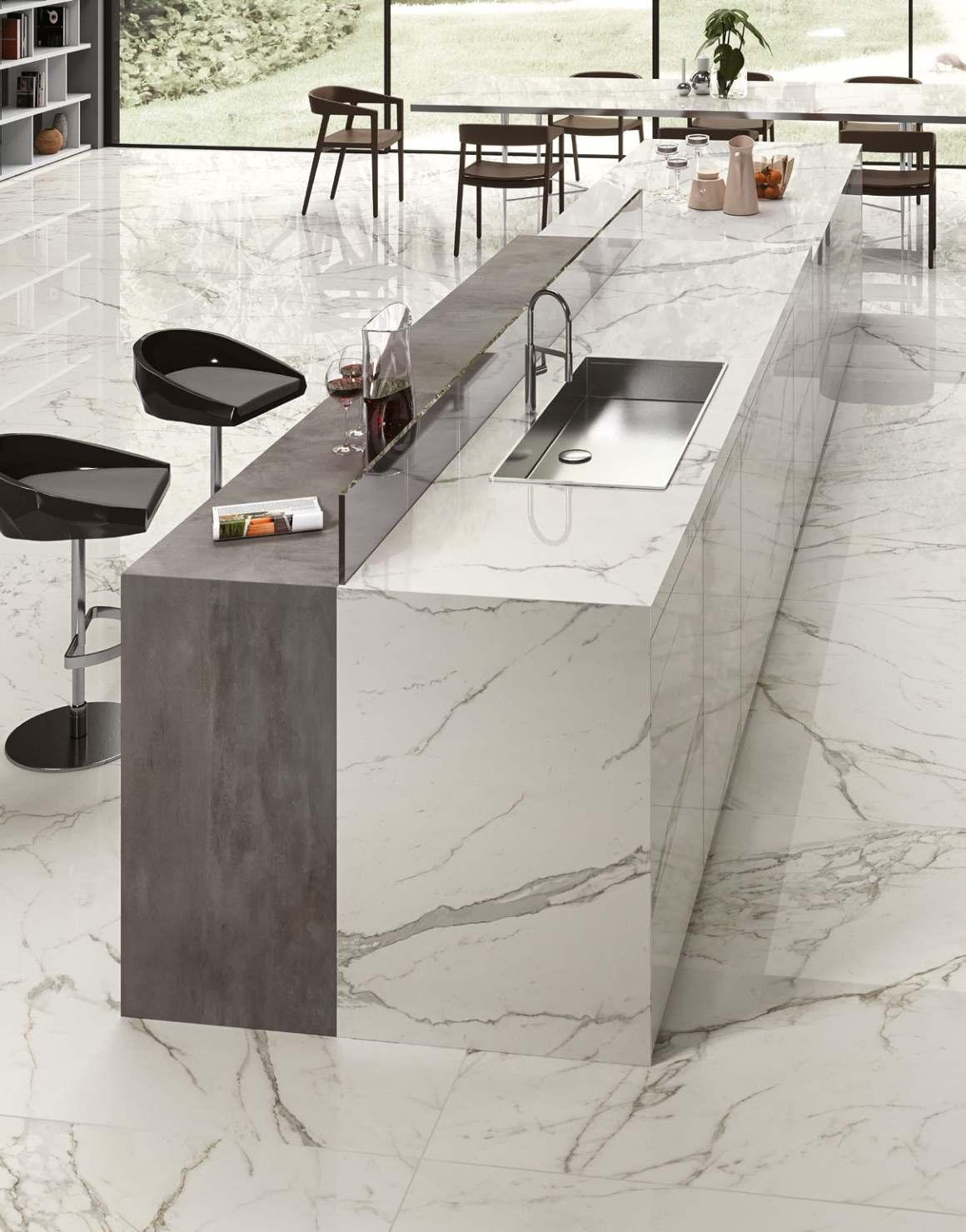 TM Tech è la tecnologia del Gruppo Concorde che permette di riprodurre nello spessore delle lastre in gres porcellanato la venatura tipica di un materiale naturale come il marmo. Una tecnologia esclusiva che può essere applicata alle lastre Atlas Plan con spessore di 20 mm.