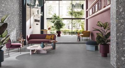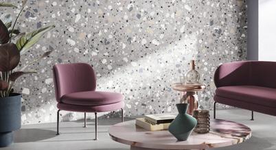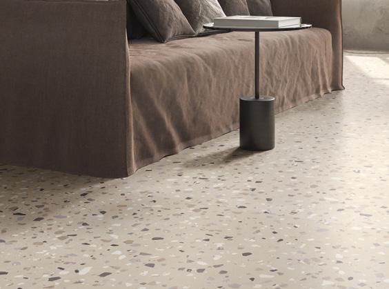 Das Wiederaufleben der unvergänglichen Ästhetik von Zement-Terrazzo mit mosaikartigen Splittern: eine ausgewogene Kombination aus Design, Farbe und Vitalität.
