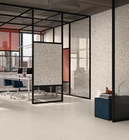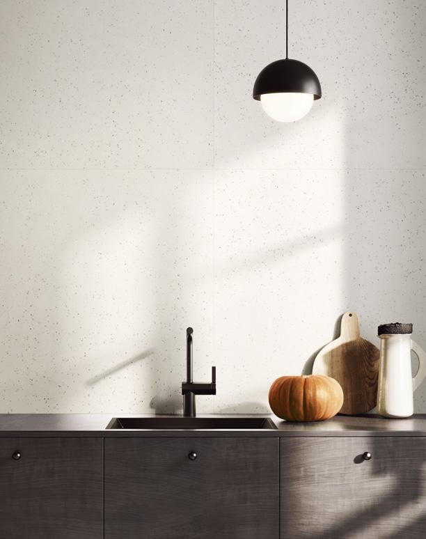 Ceramics can cover every surface with tailor-made solutions. In the kitchen, it is ideal for worktops and containers. In the bathroom, for tops and washbasins with coordinated oors and walls.