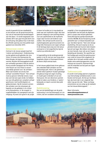 Toekomstmuziek Er wordt in de huidige plannen al gekeken naar kleinschalige verblijfsrecreatie in combinatie met het park. Als het aan Van Beers ligt, dan komt dat in een volgende fase zeker nog aan de orde: “Maar voorlopig concentreren we ons volop op de realisatie van het nieuwe Belevingspark.” < Meer informatie: www.dierenparkemmen.nl www.joravision.com