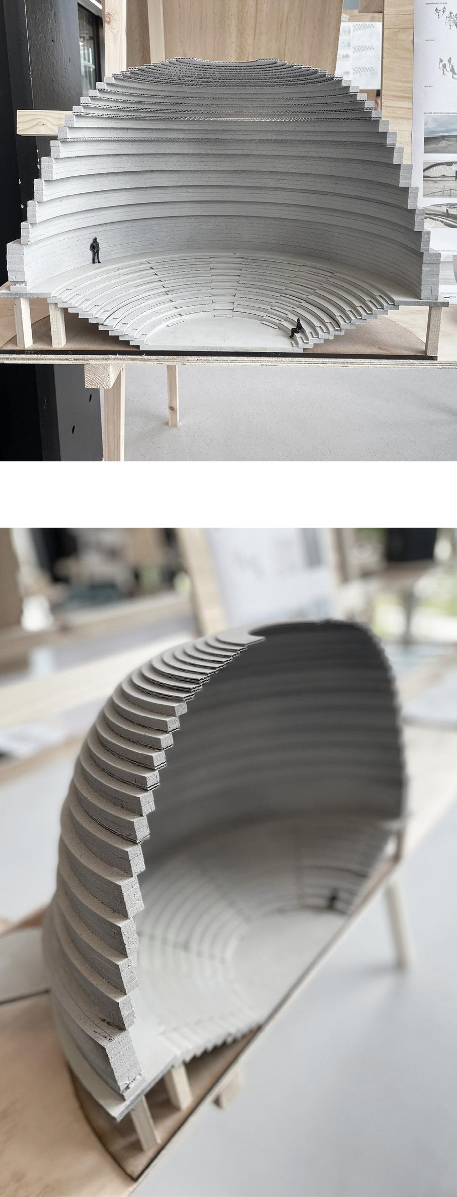A celebration of life 28 Upon standing or seating in the gath ering space the users is made small. When confronted with a death or a birth, we feel small, in awe. And based on the circumstance surrounding life or death, we can either feel powerful or powerless. Both feelings convey magnitude and grandeur, which are ex pressed in the volume of the gathering space. DEVELOPING THROUGH MODEL MAKING