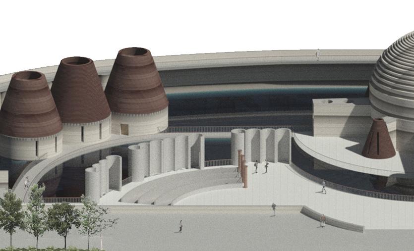 Software used: Revit,Photoshop. The concept of death, life, and memory were explored in the creation of an anti thetical atmospheric civic scheme. Birth and death alike are unavoidable and essential. Regardless of faith or philosophical beliefs, every human is set to experience both events. The antonyms share a common ground: the individual does not consciously witness the act of being brought to life or ceasing to exist. As opposed to the com munity that surrounds them, who is privy to such details and is the keeper of those memories. The scheme aims to provide a place for those individuals and their com munity. A place made for the witnesses, survivors, and ultimately, for the commem oration of the celebrants.