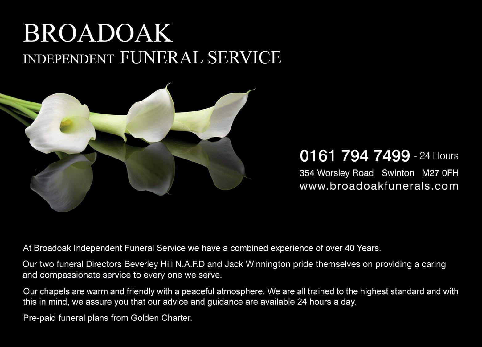 Contact Jack or Beverley 0161 707 8778 info@alderforestfuneralhome.org.uk www.alderforestfuneralhome.org.uk 375 Worsley Road, Winton, Eccles, M30 8HU
