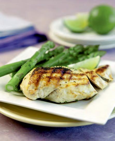 A er approximately 10 minutes (depending on your BBQ) baste the chicken with the marinade you reserved back earlier then turn the chicken over. Baste the other side. Now add your asparagus onto the grill. Keep turning your asparagus every 90 seconds to avoid it burning. A er another 6 minutes, your asparagus should be cooked yet s ll with a pleasant crunch to them. Remove them from the BBQ. Probe your chicken to see if it has reached the required core temperature of 75℃ Once cooked, remove them from the grill and allow them to rest for at least 5 minutes. Pour any remaining marinade you have over the chicken and asparagus whilst they are res ng.