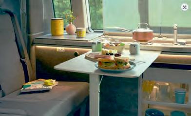 There’s also a 240v socket on the side on the van, allowing you to use devices that have a 3 pin plug (as long as your pitch has an electric hook up point). The internal ligh ng, USB sockets and fridge are all 12v and run of the vans built in leisure ba ery.