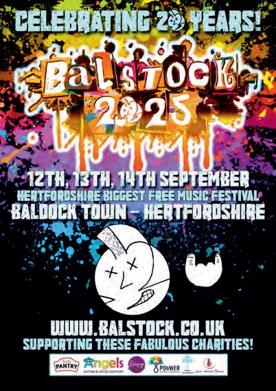 Her ordshire’s biggest free music fes val will be celebra ng “20 years of Balstock” on September the 12th, 13th and 14th. The ‘Town-wide, knees-up’ takes place in Pubs, cafes, restaurants, on the High Street, outside the Community Centre and even in St Mary’s Church, ALL FREE ENTRY and all in the name of charity. Punters are asked to donate whatever they can, so that Balstock CIC can divide money raised between the following 5 causes:
