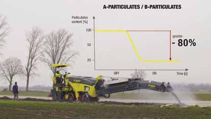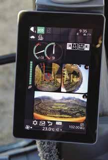 Le sei luci di lavoro a LED sono di serie e migliorano la visibilità in condizioni di scarsa illuminazione. Un monitor touchscreen da 8” consente di accedere a un sistema di configurazione a menù che permette di controllare tutte le funzioni della macchina. È disponibile uno schermo secondario per le telecamere.