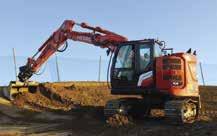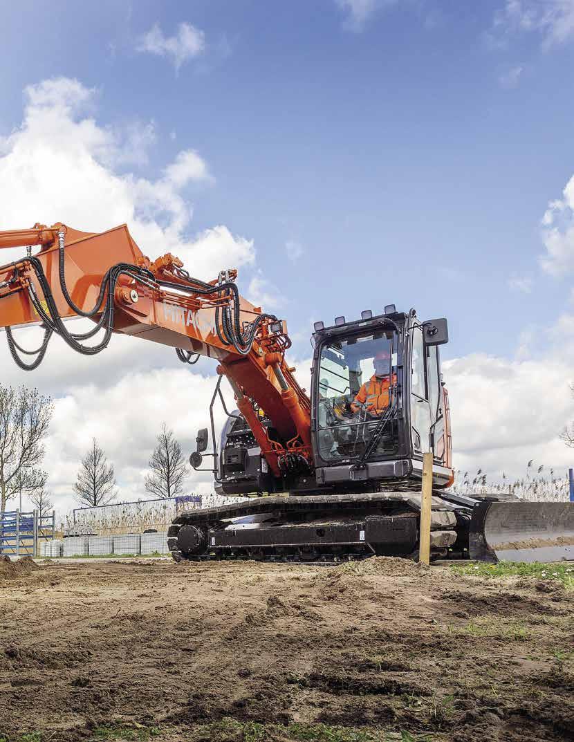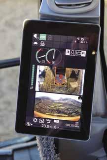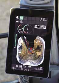 visibilità dall’abitacolo anche su quel lato della macchina. Le quattro luci di lavoro a LED a grande luminosità di serie sulla cabina migliorano la visibilità. La sicurezza dell’operatore è rafforzata dalla telecamera posteriore in dotazione di serie e dal sistema opzionale AVM (Around View Monitoring) con ripresa a 360° e cinque diverse modalità di visualizzazione sul display (dall’alto; posteriore; dall’alto + destra; destra + angolo; e 3D). Il sistema HVAC potenziato offre un maggior numero di bocchette per dirigere il flusso di aria calda e fredda.