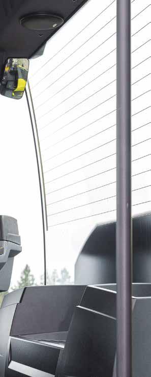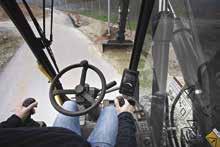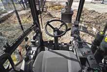 di blocco viene rilasciato. La cabina è dotata di un piantone dello sterzo telescopico con due punti di inclinazione, per facilitare gli operatori di tutte le taglie nella ricerca della posizione di guida più confortevole. Il parabrezza è dotato di tergicristalli paralleli sia nella parte superiore che in quella inferiore, per ottenere una copertura più ampia possibile. Inoltre, le macchine possono essere fornite con una telecamera posteriore opzionale sul lato destro. Il CASE