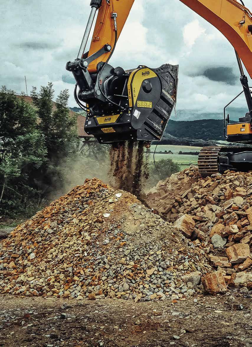 Frantoio a mascelle. Installato sulla tua macchina operatrice, trasforma lo scarto in materiale di qualità pronto al riutilizzo.