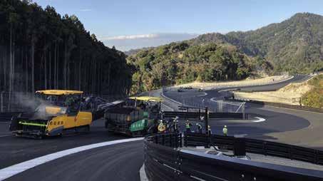 e SUPER 1803-3i e una finitrice della Highway Class 1900-2 hanno realizzato la stesa, mentre un alimentatore MT 3000-3i Offset convogliava il conglomerato bituminoso dagli autocarri alle tramogge di carico delle finitrici. Le tre finitrici hanno steso complessivamente quattro strati su una superficie totale di quasi 100.000 m²: 18 cm di strato di base non legato, 12 cm di strato di base legato, 6 cm di strato di collegamento e 4 cm di manto d’usura. Ai 36.000 m² del circuito si sono aggiunti altri 60.000 m² per vie di fuga, corsia dei box e percorsi di servizio. Queste aree secondarie e gli strati di base sono stati realizzati sotto la regia di una SUPER 1900-2 che l’impresa generale di costruzioni Maeda Road Construction utilizza con successo da anni. Le finitrici hanno lavorato prevalentemente con il metodo