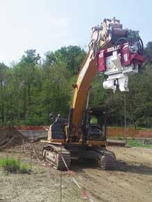 portato i progettisti a scegliere di utilizzare la tecnologia del palo trivellato con ausilio di camicia di rivestimento. I pali vengono incamiciati fino a una profondità di 24 m, per poi procedere con trivellazione libera fino alla profondità complessiva di 36 m. La particolarità del cantiere sta nella scelta di due differenti metodologie di infissione per realiz-