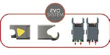 La versione Evo è costituita da tre elementi fondamentali e brevettati che le conferiscono una elevata sicurezza in cantiere: indicatore laterale di colore giallo e forma triangolare “Safe Check” ad alta visibilità, costituito da materiale durevole; indicatore frontale visibile dall’operatore in cabina; forcella a doppia sede che evita il rischio di caduta accidentale dell’utensile applicato per tutta la corsa, fino a un angolo di 30°dalla verticale del braccio scavo. La sua forma permette di sganciare l’utensile solo una volta che questo viene depositato a terra in posizione stabile. Una soluzione, questa, che migliora ulteriormente l’efficacia in termini di risultato, limitando al minimo gli interventi di manutenzione dell’utente.