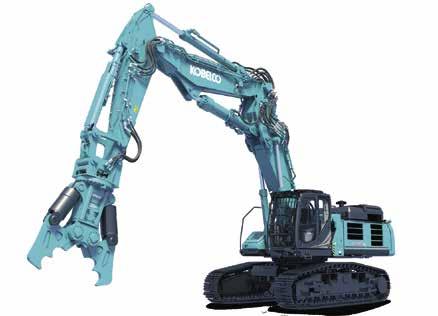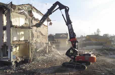 delle necessità, ha dispiegato tutta la polivalenza e versatilità. Il primo è stato impiegato per la demolizione primaria con una pinza dal peso operativo di circa 1.500 kg, il secondo in secondaria con un frantumatore girevole Everdigm EHP45R dal peso operativo di 4.500 kg. Attrezzatura che ha permesso di affrontare la riduzione volumetrica e la separazione del ferro di armatura in modo rapido ed efficiente. Nel cantiere di Beinette, a supporto dello ZX400MC-7, hanno lavorato anche una pala gommata