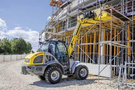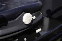 indipendentemente dal carico, ad esempio il sollevamento, il telescopio e lo scarico. Anche la cabina è stata completamente ridisegnata, con due entrate e uscite complete su ciascun lato della cabina. Il bracciolo pieghevole con joystick e tasti funzione è montato sul sedile del conducente e può essere regolato in lunghezza per adattarsi alle esigenze del conducente. Il display opzionale da 7” apre un nuovo mondo di impostazioni della macchina e di sistemi di assistenza. Ad esempio, la sensibilità del joystick o la quantità
