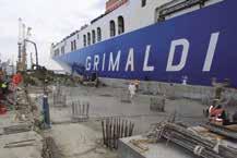 Le particolarità del cantiere Oltre alle migliori condizioni di navigabilità e accessibilità per navi di maggiori dimensioni, dunque, il progetto “Ravenna Port Hub: Infrastructural works” consente il citato adeguamento delle banchine portuali e la realizzazione di una banchina a uso di un moderno container terminal che assicuri maggiori capacità ed efficienza. Grazie a ciò il sito potrà disporre di nuove aree per l’inse-