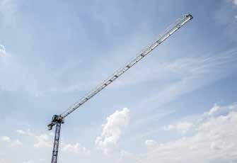 punta di 1,4 t e un’altezza libera standard di 45,75 m, questa “Flat Top” è qui eretta a un’altezza sotto gancio di 56 m e con un sistema di torre mista TS 12/TS 16.