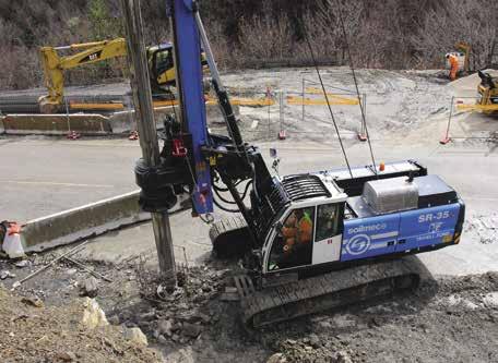 le, pozzi, pali, diaframmi e consolidamenti in genere, sia nel settore pubblico che nel privato. Nella fattispecie, Trivell Fond ha scelto di eseguire i lavori utilizzando la macchina più recente della sua flotta, una perforatrice Soilmec SR-35. La necessità di mantenere in esercizio la strada statale ha indirizzato la scelta della soluzione da adottare verso l’utilizzo di una macchina perforatrice di piccola taglia, che consentisse di tenere disponibile al traffico una carreggiata e allo stesso tempo avere un mezzo in grado di scavare in terreni così ostici.