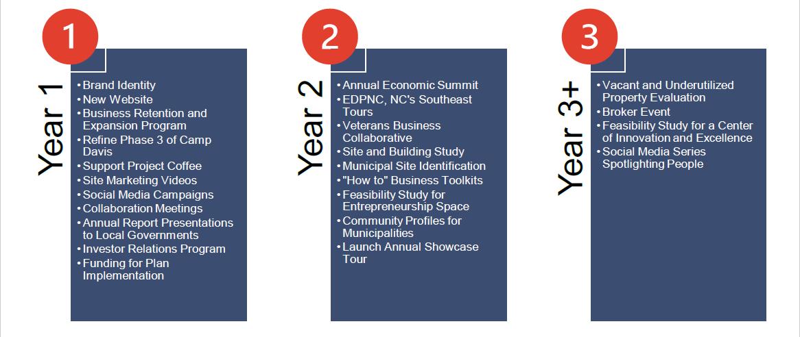 The strategic planning process occurs every five years for Jacksonville-Onslow Economic Development (JOED). The most recent process began in August 2024 and culminated in a new strategic plan that was published and launched in August of this year.