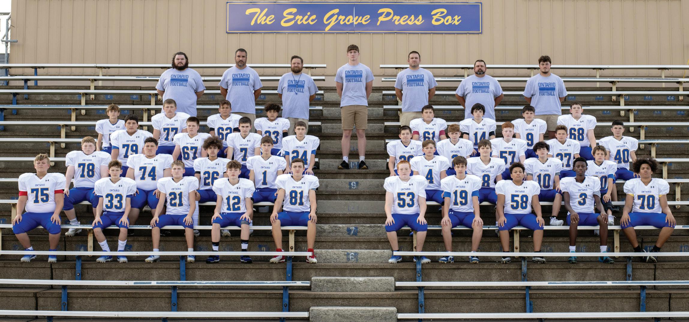 Row 4 (L to R): Cam Powers, Liam Smith, Brendan Chavez, Clarence Blevins, Jimmy Unger, Cam Steensland, Alex McWhorter, Gavin Mille Row 5 (L to R): Trey Remy, Carson Mortiz, Jermel Powell, Tre Fowler, Brody Cheek, Dakota Yunker, Lincoln Ginn, Kooper Kilgore Row 6 (L to R): Cole O’Blisk, Cameron Barnhill, Eli Baumgard, Zane Curry, Atlee Price, DeMare Lindsay, Cardae Brown, Trindon Flenoury Row 7 (L to R): Desmond Hefner, Rahiem Neely, Hayden Peters, Luke Genders, Maddix Smith, Max Gfer, Drew Herndon, Joseph Schnees, Matt Jenkins, Max Cirol Row 8 (L to R): Coach Eckert, Coach Basham, Coach Skelton, Coach Ball, Coach Muncy, Coach Mutti, Coach Oliver, Coach Miller, Coach Hamm