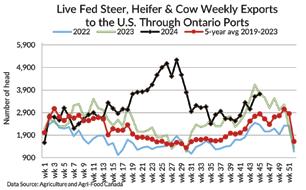 WEEKLY LIVE CATTLE EXPORTS-ONTARIO