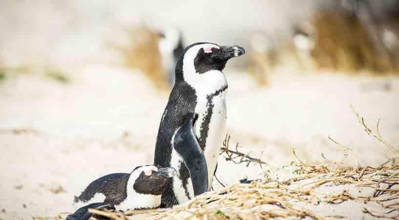 A highlight of the day is a visit to nearby Boulders Beach, home to a colony of the rare African Penguin. Most of the colonies are offshore, but human reduction of predators on the mainland have led to the penguins establishing colonies where they’re more easily views by humans. Boulders Beach has been a popular spot to see the penguins since the 1980s. There’s ticketed admission to a raised boardwalk above the beach to maintain distance and preserve the natural habitat of the penguins, which cluster on the beach in a group of about a hundred.