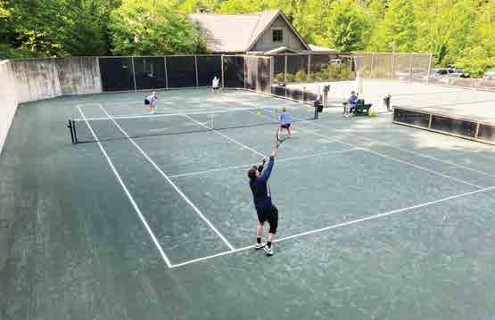 There’s a gym decked out with the latest in equipment as well as personal trainers available. There are therapy rooms for massages and other spa treatments. And right next to that is a pool and a pristine tennis center with two perfectly maintained har-tru courts.