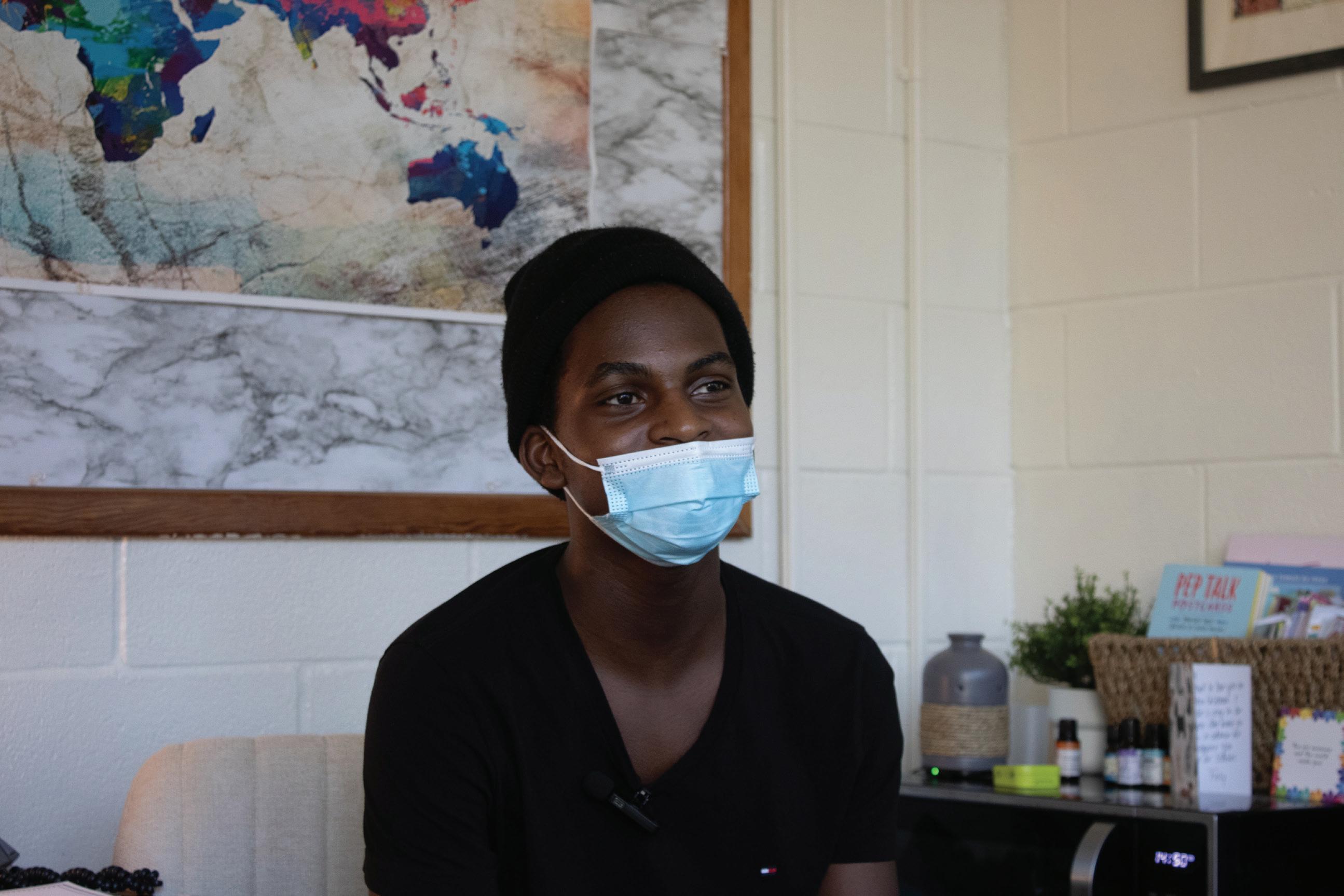 Peer Mentor - Irankunda Izabayo, 16, a sophomore at Seneca High School, is interviewed inside an administrator’s office on Sept. 11. Izabayo is a student in the Health Science Academy and translates for the school’s students who speak Kinyarwanda and Swahili. Photo by Emma Johnson