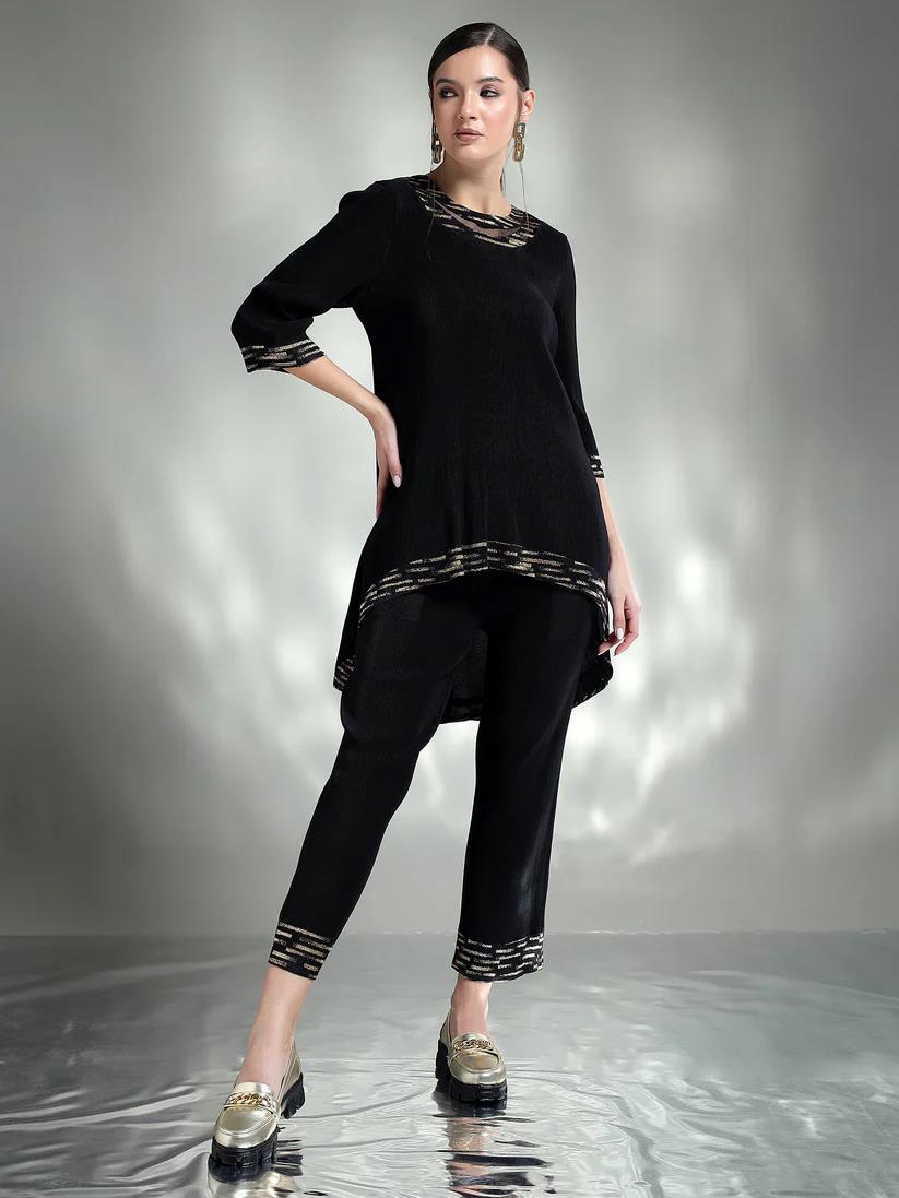 Discover the perfect metallic long sleeve dress at Onto By Aanchal and let your style shine bright. Shop our collection today and add a touch of sparkle to your wardrobe!