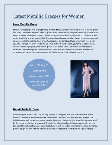 Crafted from high-quality fabrics, our metallic dresses are not only eye-catching but also comfortable to wear. The long sleeves add a touch of modesty while enhancing the overall chic look, making these dresses suitable for various events and seasons. The shimmering metallic finish ensures that you stand out, capturing attention and admiration wherever you go.