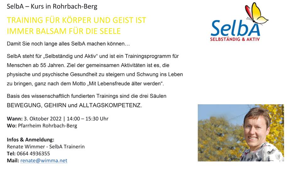 Anmeldung und Details: Stadtgemeinde Rohrbach-Berg Frau Svenja Pfeil veranstaltungen@rohrbach-berg.ooe.gv.at oder 07289/6255-213