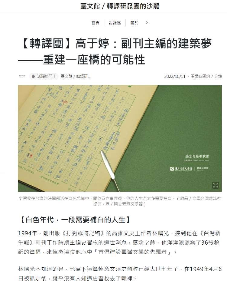 相關文章皆刊登於「臺文館/轉譯研發團」方格子