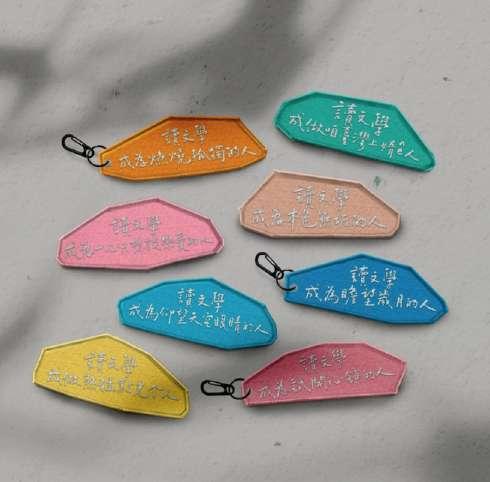 國立台灣文學館於2021年與手寫字藝術家CY合作,透 過手寫字進行金句設計,體現文字之美,分別製成布貼 與鑰匙圈共八款,開發「 向作家致敬:『讀文學』系列 商品」。