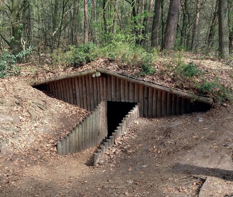 Zo zag de onderduikplek van Johnny eruit. Een zelfgebouwd huis, verstopt in het bos. Ze noemen het ook wel ‘het Verscholen Dorp’. Je kunt deze plek zelf bezoeken in Vierhouten, niet ver van Loenen.