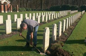 “Ik werk al bijna 20 jaar voor de Oorlogsgravenstichting. Het voelt erg goed als je een oud of vies graf weer helemaal pico bello kan achterlaten. Dat maakt je werkt eervol en de erkenning van nabestaanden is mooi.”