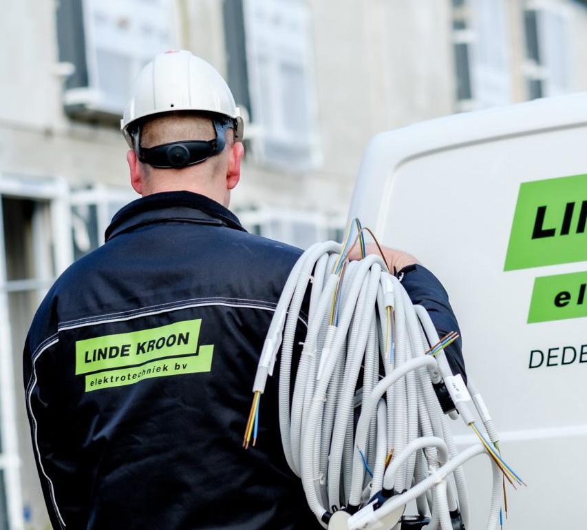 Op welke manieren is Linde Kroon Elektrotechniek duurzaam bezig? Jeroen Lawant: “De belangrijkste stap die we nu zetten, is de bouw van ons nieuwe pand. Volledig gasloos, met een warmtepomp, zonnepanelen en accu’s om elektriciteit op te slaan. Plus laadpunten voor onze elektrische bussen en auto’s van medewerkers en bezoekers. We kijken ook naar slimme vervoerbewegingen en afval. Zo vertrekken onze bussen altijd vanuit ons bedrijf naar een projectlocatie. Ze gaan niet met de medewerkers mee naar huis, maar staan bij ons binnen en worden ‘s nachts opgeladen, met de stroom die we overdag hebben opgewekt. Medewerkers komen zoveel mogelijk met een – al dan niet elektrische – fiets van de zaak naar het werk.”