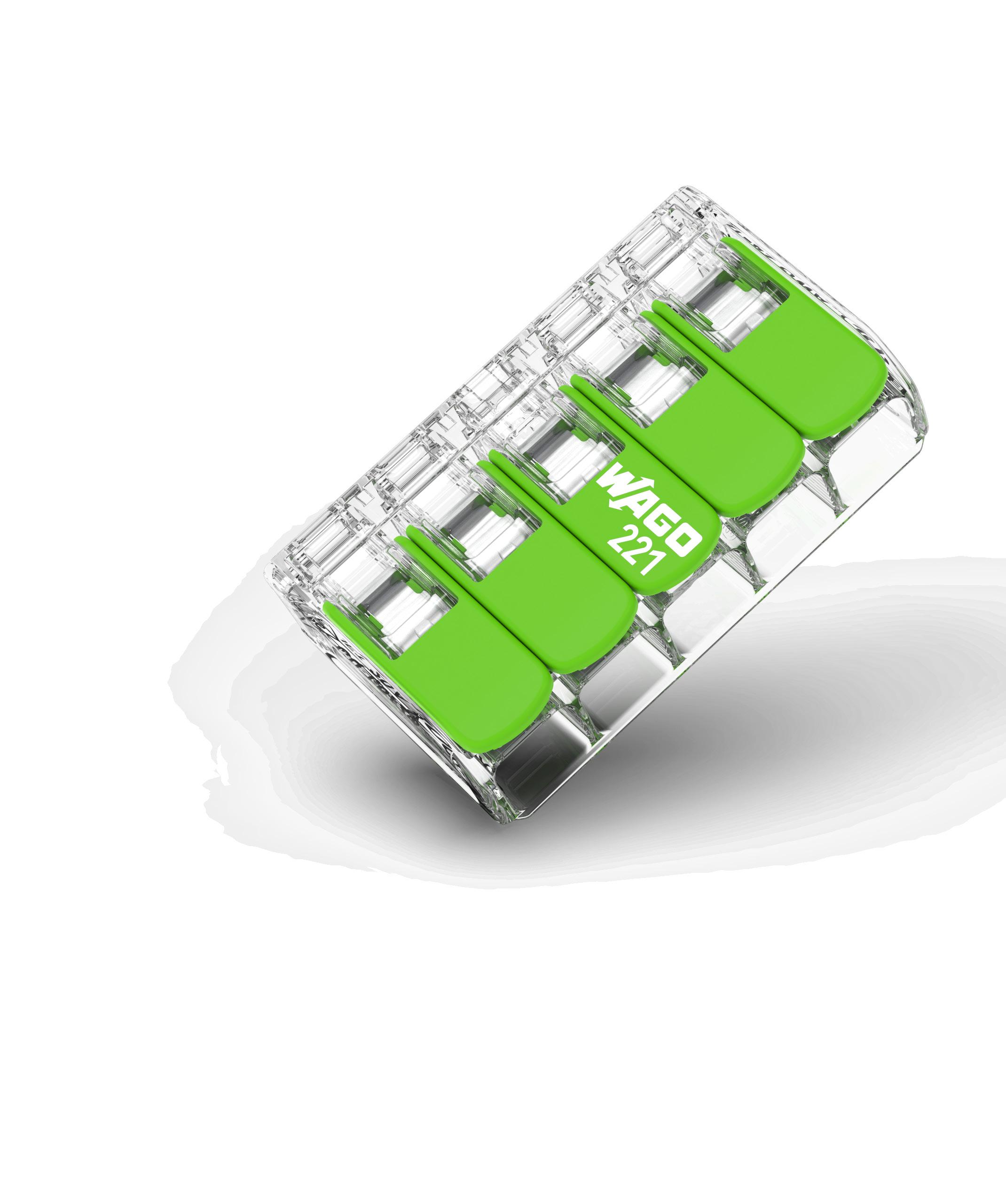 Elektrische installatie en duurzaamheid - kan dat? Dat kan met de nieuwe WAGO verbindingsklem met bedieningshendels uit de Green Range! De nieuwe aansluitklem van WAGO legt een duurzamere basis voor de installatie, omdat hij gemaakt is van gerecyclede en biocirculaire kunststoffen en zo bestaande grondstoffen in de kringloop houdt - met dezelfde kwaliteit en dezelfde certificeringen als de klassieke verbindingsklemmen uit de WAGO serie 221.