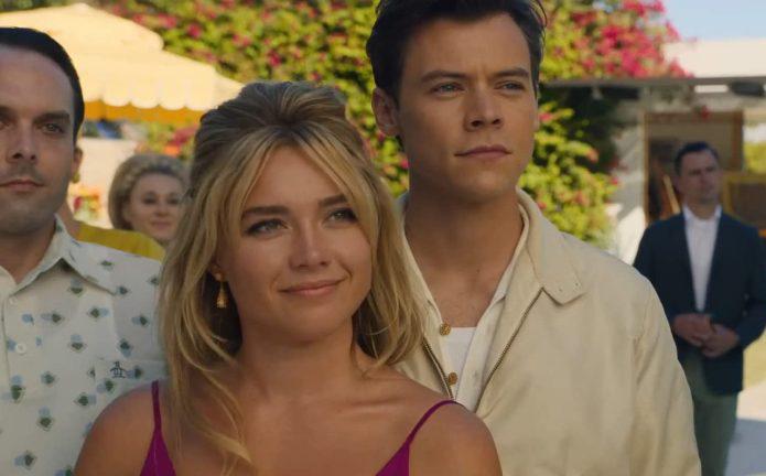 Florence Pugh (left) and Harry Styles (right) star in Olivia Wilde’s “Don’t Worry Darling,” in theaters now.