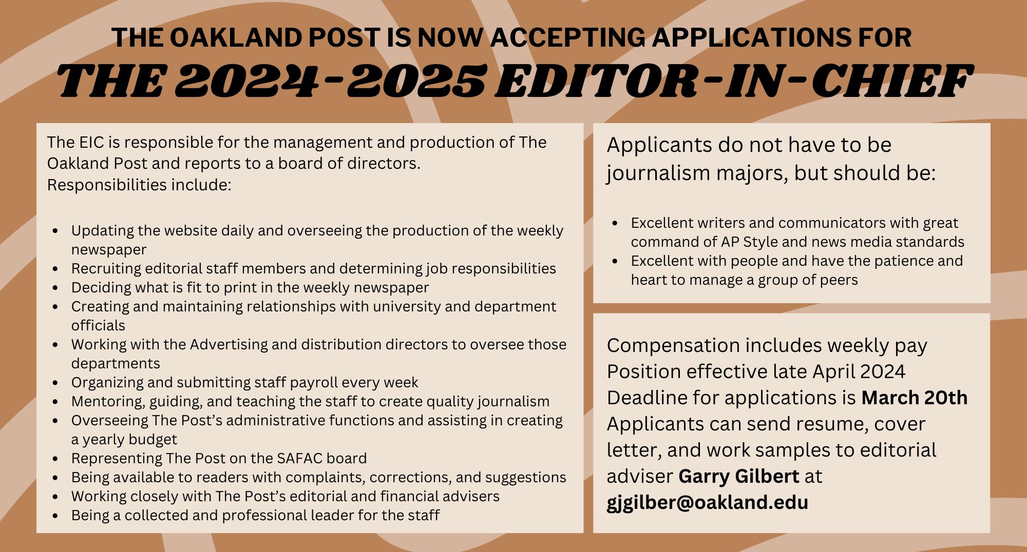 The Oakland Post corrects all known errors of fact. If you know of an error, please email editor@oaklandpostonline.com.