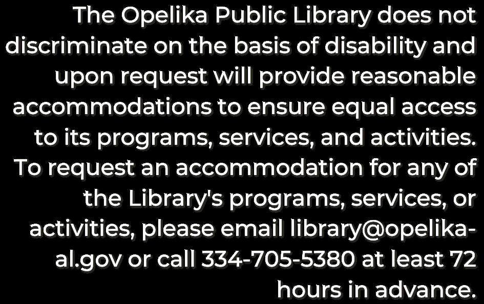 For more information about joining the Friends of the Opelika Library, please visit opelikalibraryfriends.com
