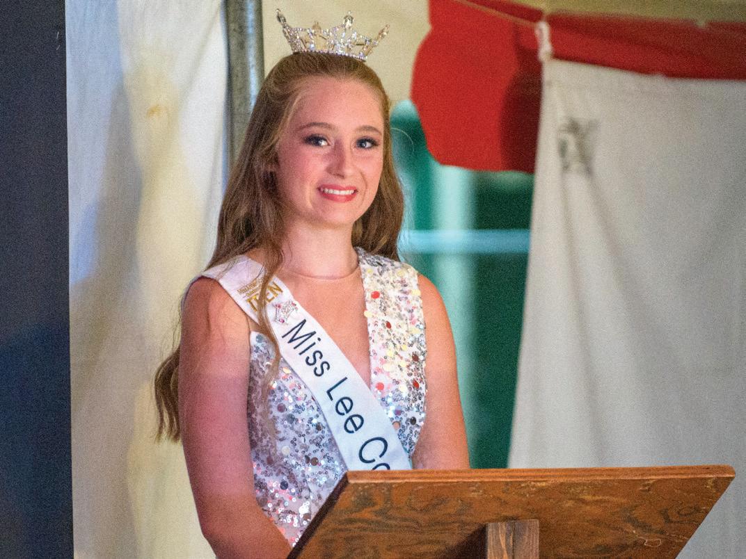 • The Miss Lee County Fair’s Outstanding Teen will begin at 7 p.m. under the big tent. Come enjoy watching our young people compete.